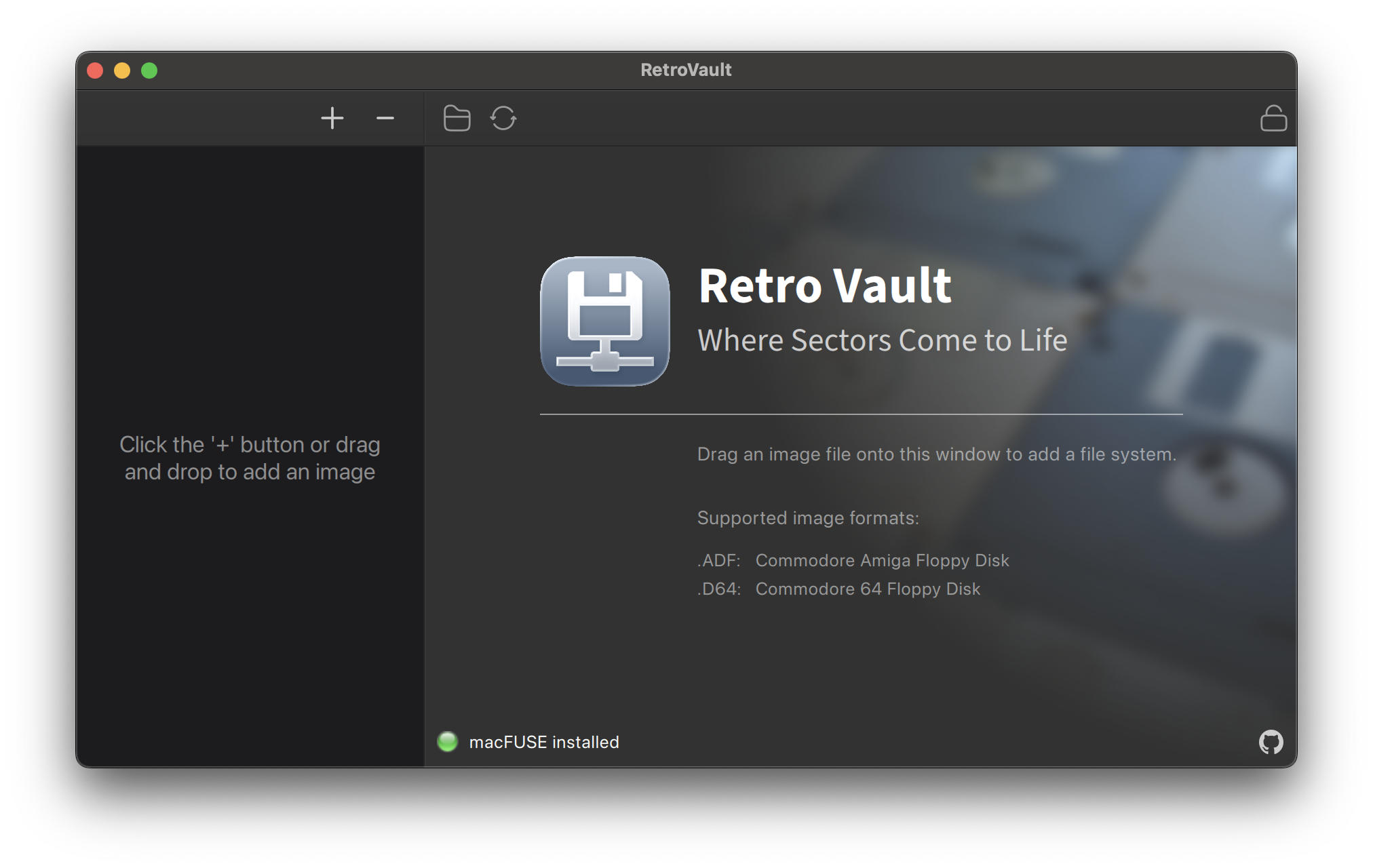 One of the core capabilities of RetroVault is the ability to mount disk images as file systems. On macOS, this is achieved through integration with macFUSE, which allows mounted images to appear like native volumes and be accessed seamlessly through Finder or standard command-line tools. Even in environments where macFUSE is not available, the remaining functionality of the application can still be used without restriction.